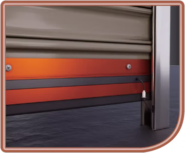 電動捲門的捲門機可以加購安裝有碰停感測器底支具有碰到物體時可停止及讓捲門反轉。底支是鋁合金材質有加裝軟質膠條內含感測器及可防塵。