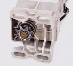 The RCB is a 4-legged model with a Gear-type mechanism that does not use a chain. A special attachment sprocket is fitted at the bottom of the motor and turns the sprockets on the bracket plate.